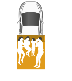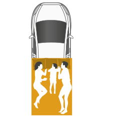 Montaggio con apertura e ingresso sul lato posteriore dell’autovettura. Soluzione possibile solo su grossi veicoli (4x4, monovolumi, furgoni). A richiesta, per Small, Medium e Large.