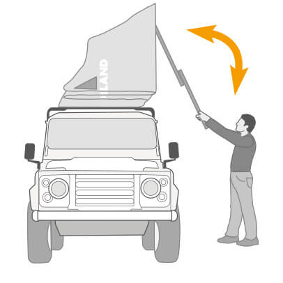 13 - In fase di chiusura, i tiranti elastici in dotazione agevolano il ripiegamento del tessuto all’interno della tenda. Questo accorgimento facilita la chiusura della tenda anche su veicoli molto alti.