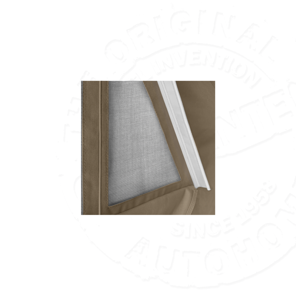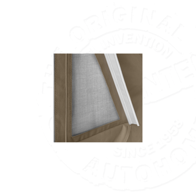Realizzato in nylon alluminato, si applica rapidamente, è leggero, non ingombra e può rimanere installato anche a tenda chiusa.
