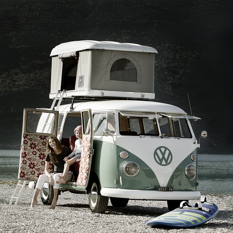 E’ la serie di tende con un’affidabile e collaudata apertura in 2 tempi: le 4 molle a gas sollevano il tetto e, quando occorre, i Windstop integrati garantiscono un’ulteriore stabilità al forte vento. Con Airtop sollevando il tetto i tessuti si distendono automaticamente, raggiungendo la tensione ideale; questo avviene grazie a speciali braccetti e molle ad hoc perfettamente ottimizzate allo scopo: non occorre effettuare ulteriori manovre distensive o di assestamento per mettere in tensione i tessuti. Solo la serie Airtop propone le vere tende apribili in 2 tempi subito pronte all’uso. Diffidare dalle imitazioni o da passaparola poco informati o… troppo interessati! I gusci, come da tradizione per Autohome, sono sempre interamente in Vetroresina, in modo da garantire eccellente e riconosciuta qualità. La vetroresina non scalda sotto il sole, mantiene costantemente un ambiente isolato dal caldo e dal freddo: caratteristica indispensabile per una roof tent. Grazie alla Vetroresina (a differenza delle comuni plastiche), i gusci “made in Autohome” garantiscono qualità superiore non solo in termini di resistenza alle intemperie e isolamento acustico, ma anche di leggerezza. Inoltre permettono una facile riparazione in caso di rotture accidentali evitando, così la sostituzione di interi gusci. La gamma Airtop propone un’ampia disponibilità di modelli misure e colori: c’è una soluzione o per ogni desiderio e necessità. La scocca molto capiente, permette di stivare comodamente sacchi a pelo, beauty ed effetti personali. Tutto all’insegna di viaggio, vacanza e avventura!