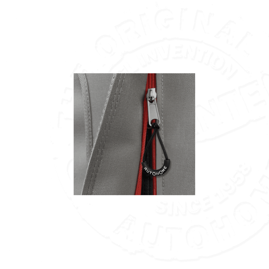 13 - In fase di chiusura, i tiranti elastici in dotazione, manualmente attivabili con comode clips agevolano il ripiegamento del tessuto all'interno del guscio. Elastici ben disposti, non cuciti direttamente sui tessuti, non generano "ruche" o arricciature sul tessuto, non lo danneggiano; così da scongiurare infiltrazioni e imperfezioni estetiche sulla tenda. Questo accorgimento facilita la chiusura della tenda anche sui veicoli molto alti.