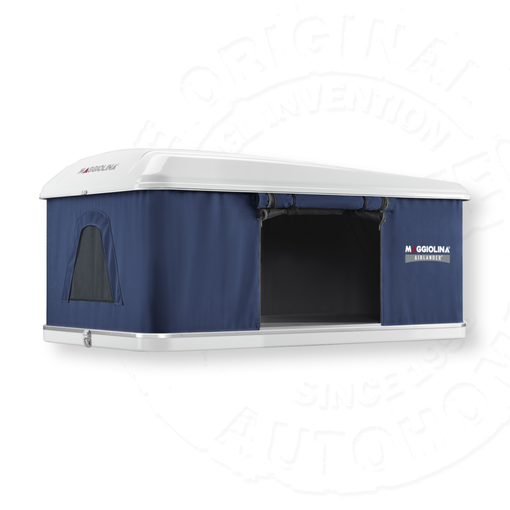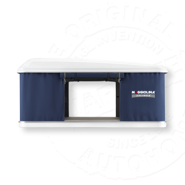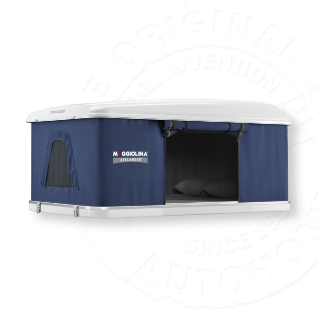 La tenda da tetto Maggiolina Airlander è disponibile nel classico colore blu con guscio bianco, la tradizionale colorazione che caratterizzava i modelli originari, protagonisti di tantissime avventure ai quattro angoli del mondo. Nei modelli più capienti, questa tenda da tetto auto può ospitare una famiglia con due adulti e due bambini, con la possibilità per entrambi gli adulti di stare comodamente seduti.