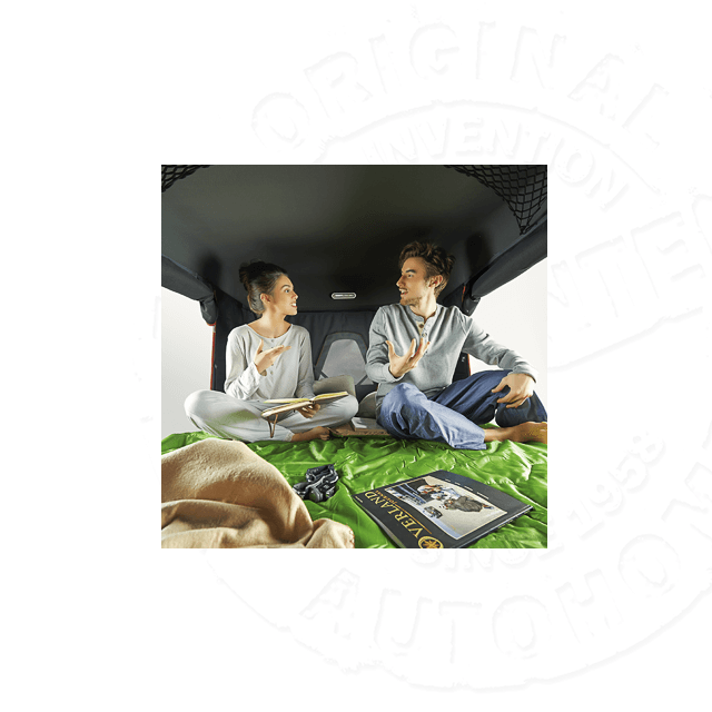 La nuova linea invita a scoprire le qualità più nascoste: provate ad accomodarvi all'interno della tenda da auto, basta un istante per avere la sensazione di un ambiente confortevole e spazioso. Come ogni tenda per auto firmata Autohome, anche Maggiolina Grand Tour è progettata per regalare nottate comode, sicure e asciutte in qualunque condizione.
