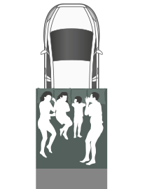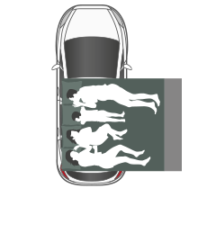 Montaggio con apertura e ingresso sul lato posteriore dell’autovettura. Soluzione particolarmente indicata per alcuni tipi di fuoristrada. A richiesta, per SMALL e MEDIUM.