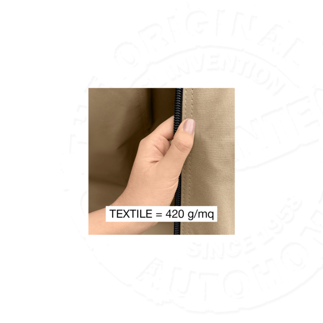 Lo speciale tessuto Overzone, è prodotto per Autohome in esclusiva e con caratteristiche tali soddisfare anche severe specifiche in campo militare. Perciò quanto di più distante esista da tessuti seriali di scarsa affidabilità, tipici da massmarket o discount.